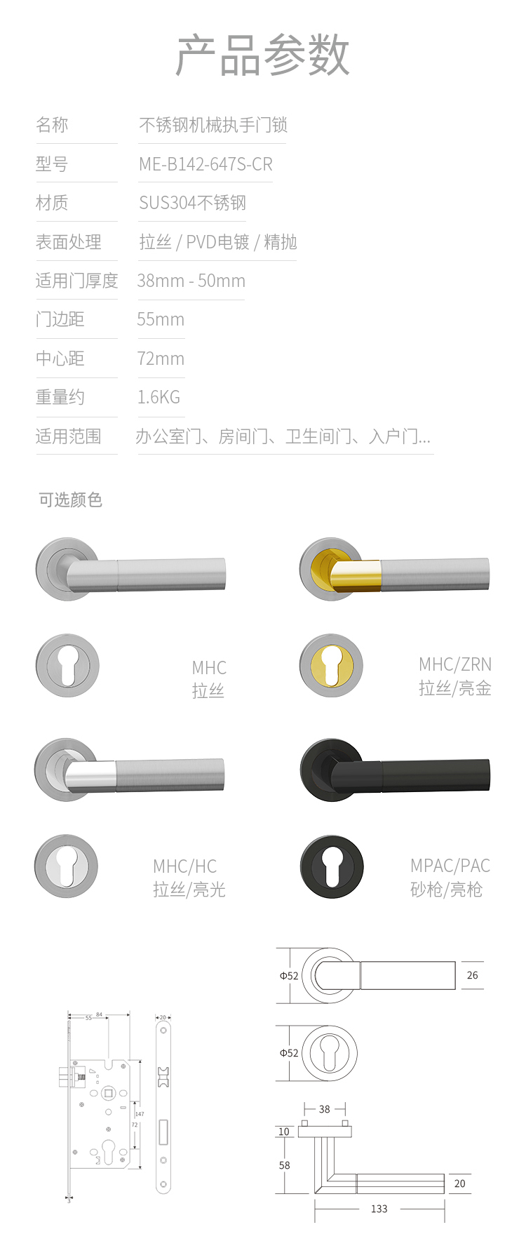 - 产品颜色:拉丝MHC、拉丝/亮金 MHC/ZRN、拉丝/亮光 MHC/ZRN