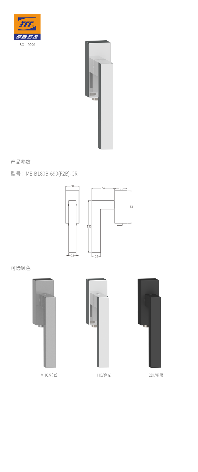 - 产品颜色:2DI/哑黑、MHC/拉丝、HC/亮光
