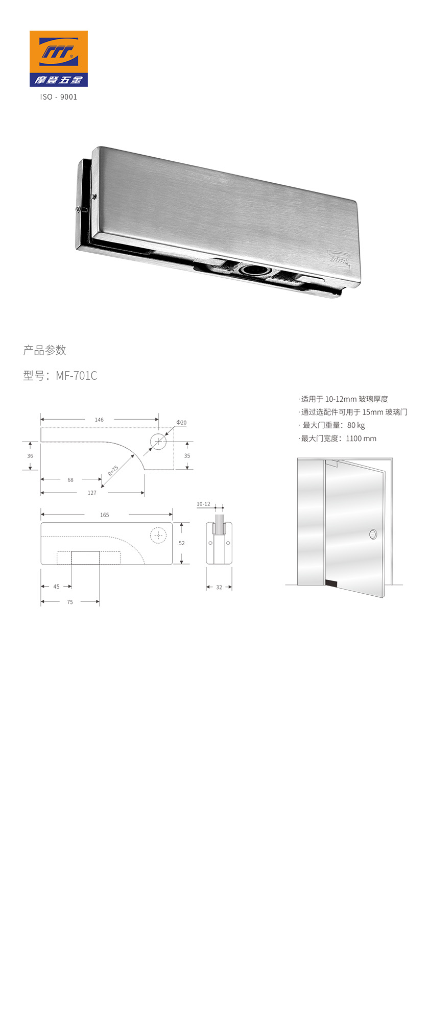 - 产品型号:玻璃门夹-下夹|MF-701C/MF-901C-CR5