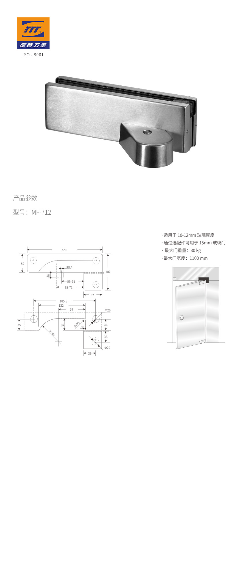 - 产品型号:玻璃偏心门夹-曲夹|MF-712