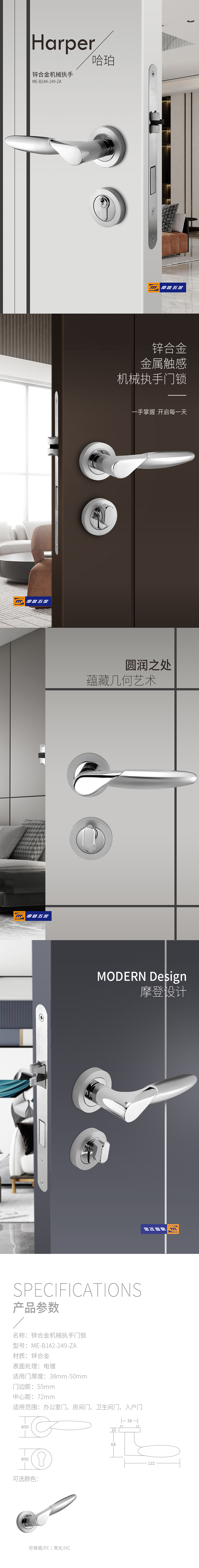 锌合金分体门锁