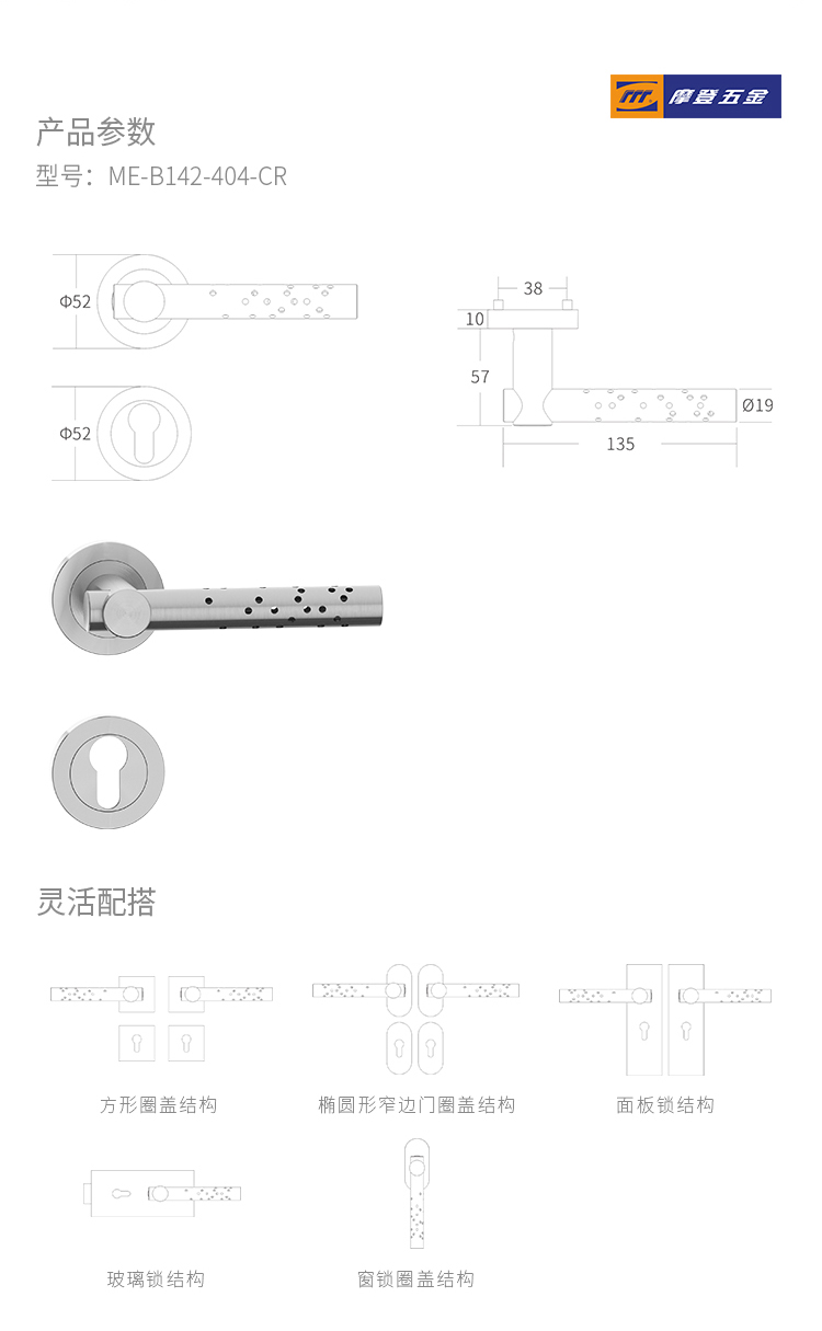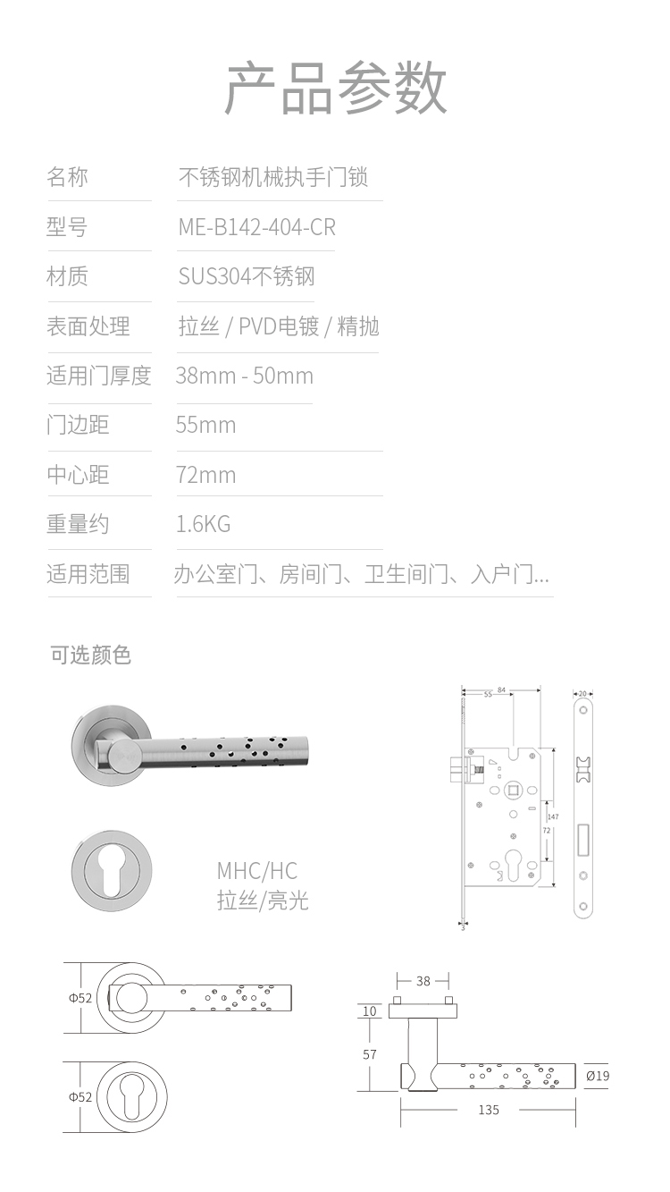 > Mechanical Lever Lockset - Stainless Steel > 非凡娱乐:B142 SERIE-(Sandwich Threaded Rose) > Details