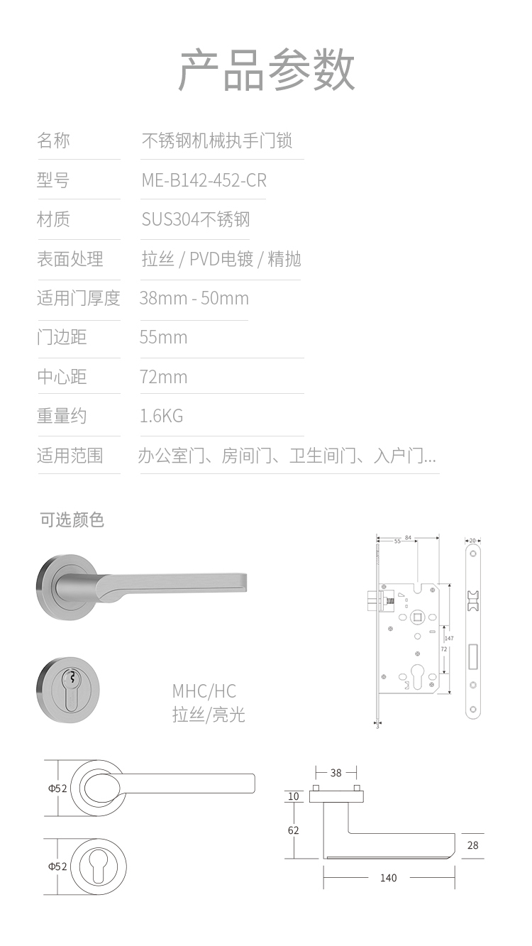 > 非凡娱乐:Mechanical Lever Lockset - Stainless Steel > 非凡娱乐:B142 SERIE-(Sandwich Threaded Rose) > Details