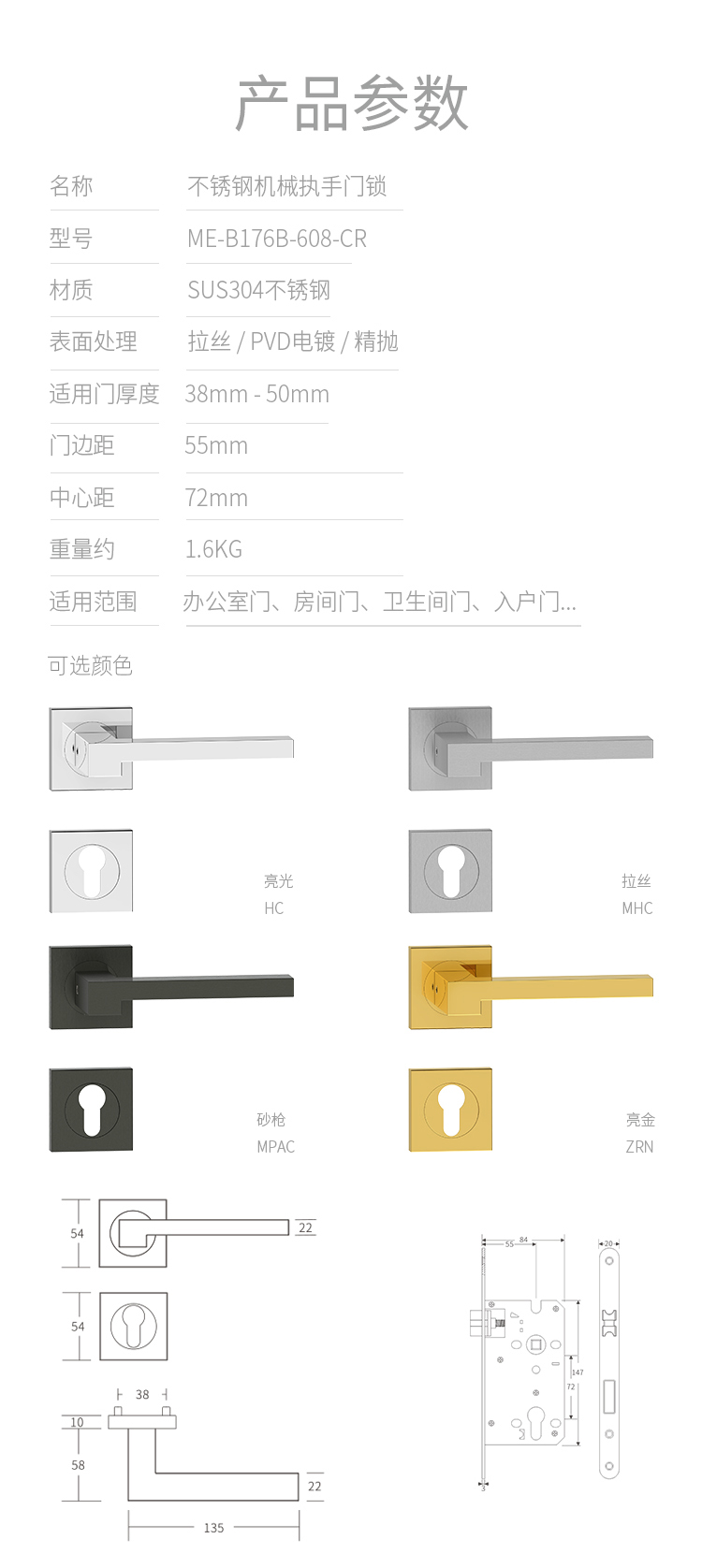 > 非凡娱乐:Mechanical Lever Lockset - Stainless Steel > 非凡娱乐:B176B SERIE-(Sandwich Clip-On Square Rose) > Details