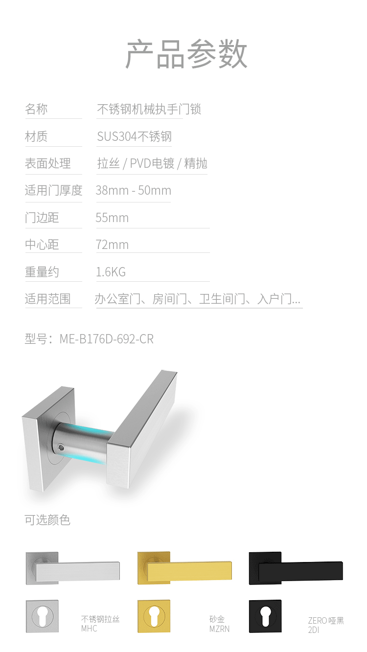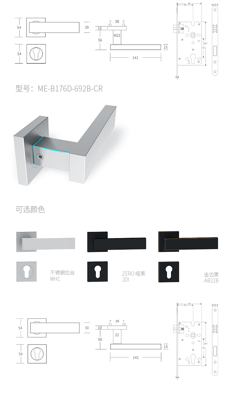 > 非凡娱乐:Mechanical Lever Lockset - Stainless Steel > 非凡娱乐:B176B SERIE-(Sandwich Clip-On Square Rose) > Details