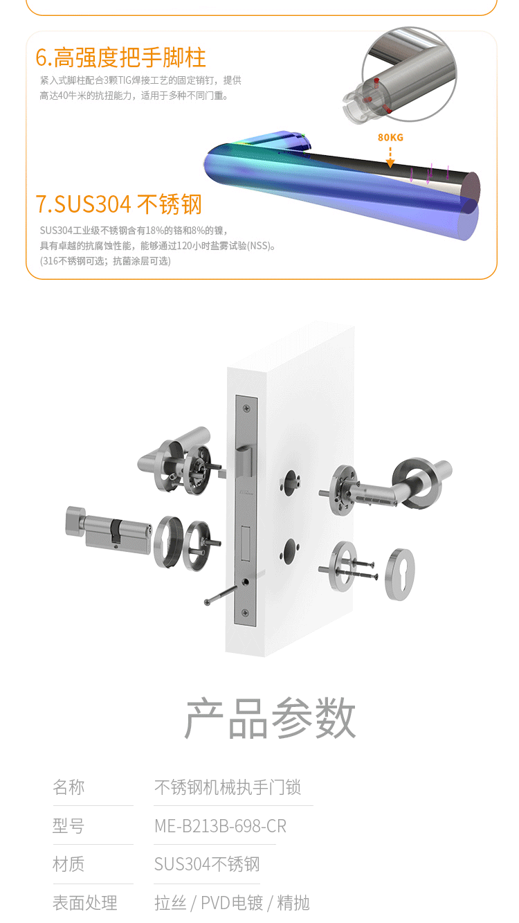 > 非凡娱乐:Mechanical Lever Lockset - Stainless Steel > 非凡娱乐:B213 SERIE-(Economic Clip-On Rose) > Details