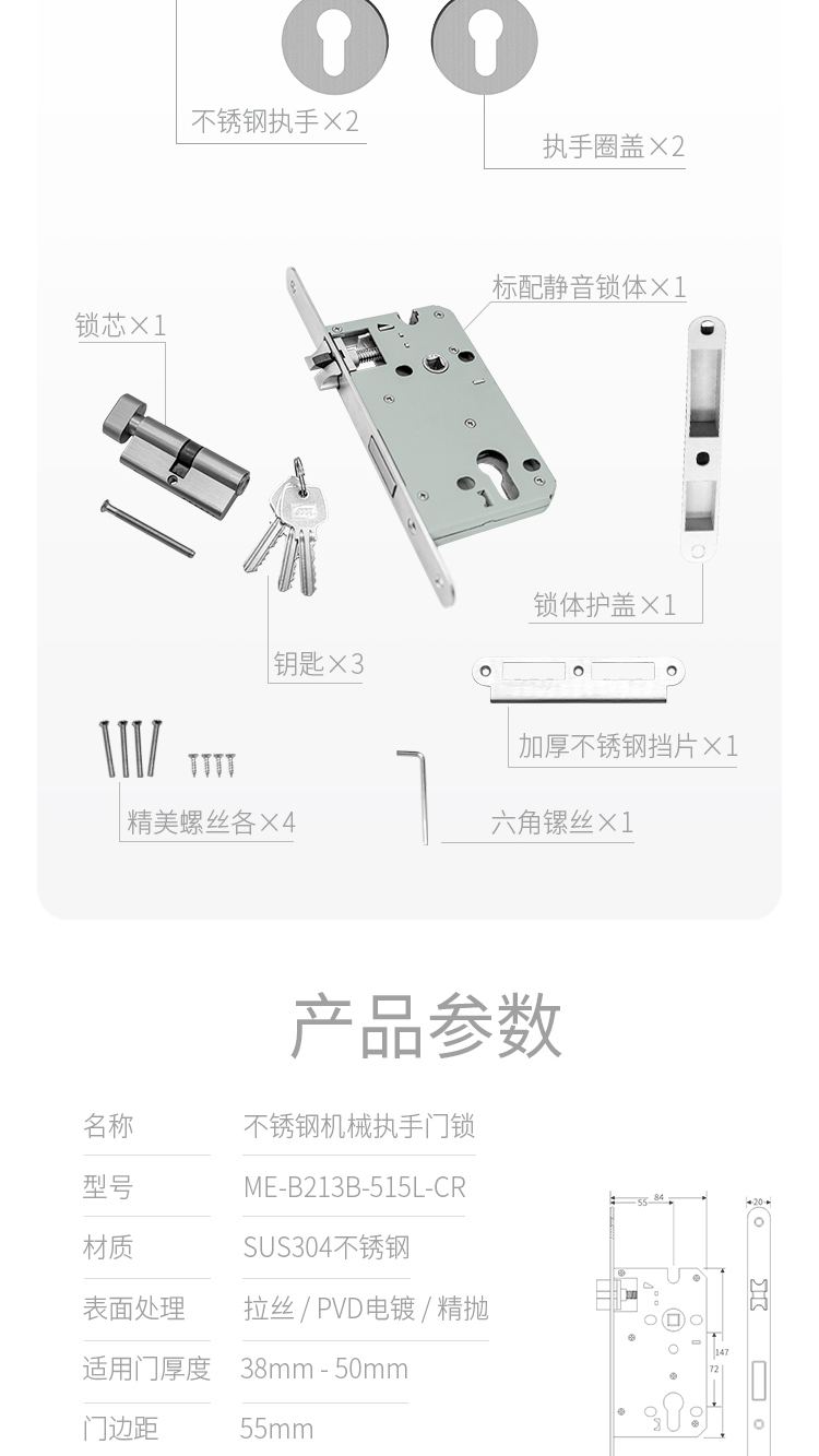 > 非凡娱乐:Mechanical Lever Lockset - Stainless Steel > B213 SERIE-(Economic Clip-On Rose) > Details