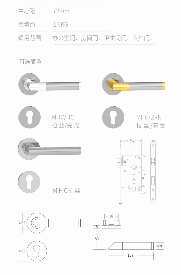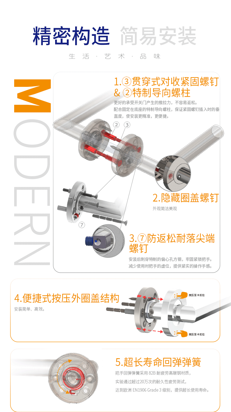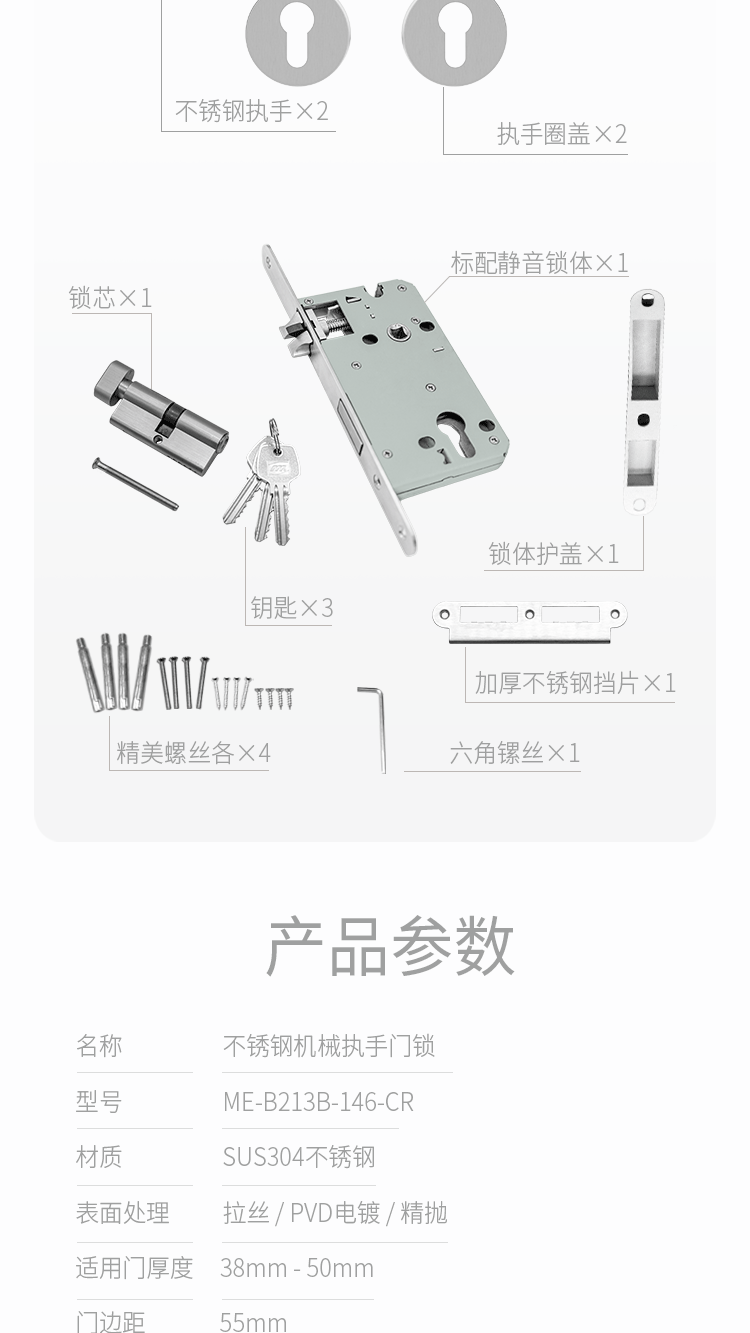 > Mechanical Lever Lockset - Stainless Steel > 非凡娱乐:B213 SERIE-(Economic Clip-On Rose) > Details