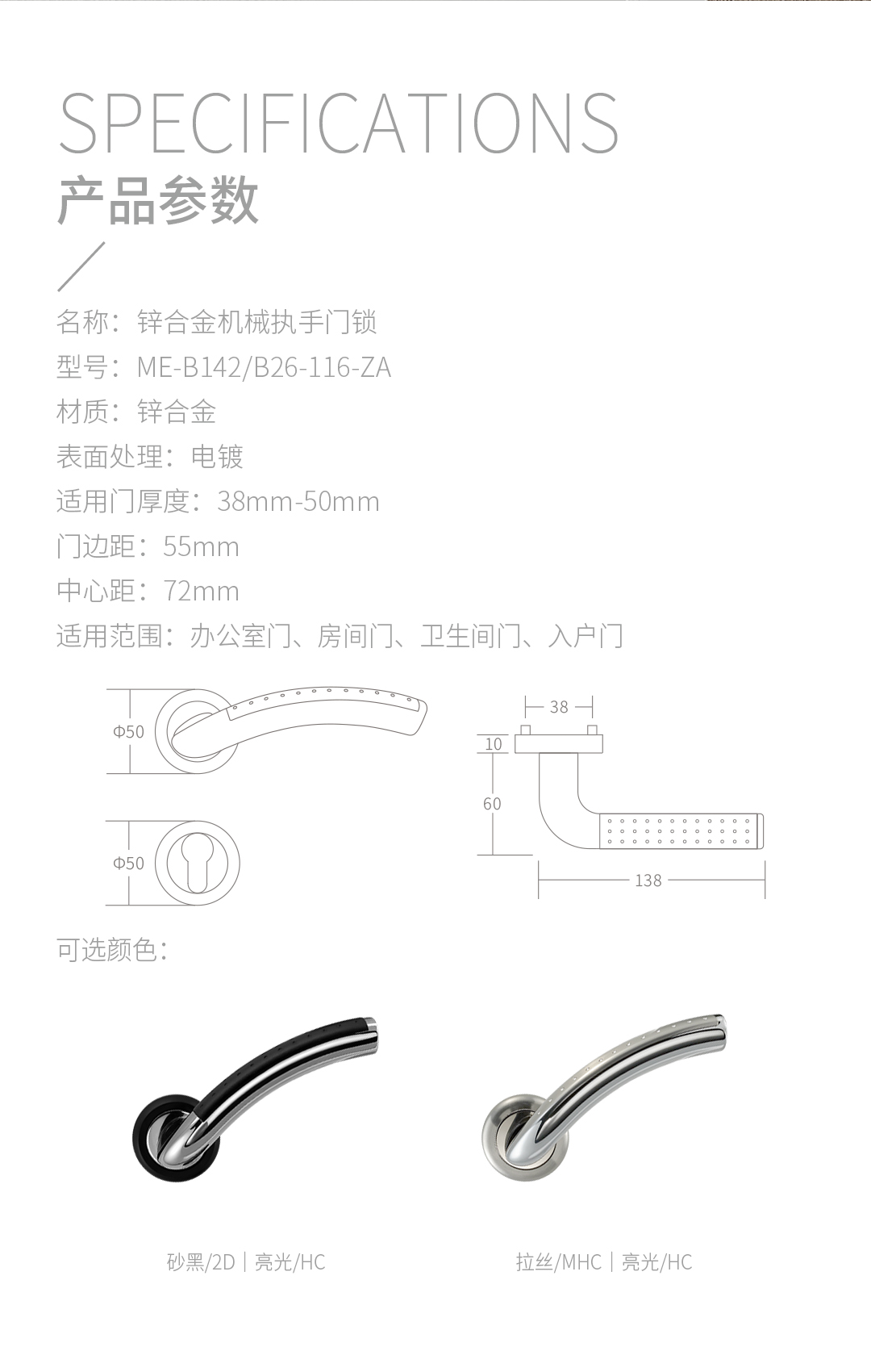 > 非凡娱乐:Mechanical Lever Lockset - Stainless Steel > 非凡娱乐:Zamak Leverset on Rose > Details