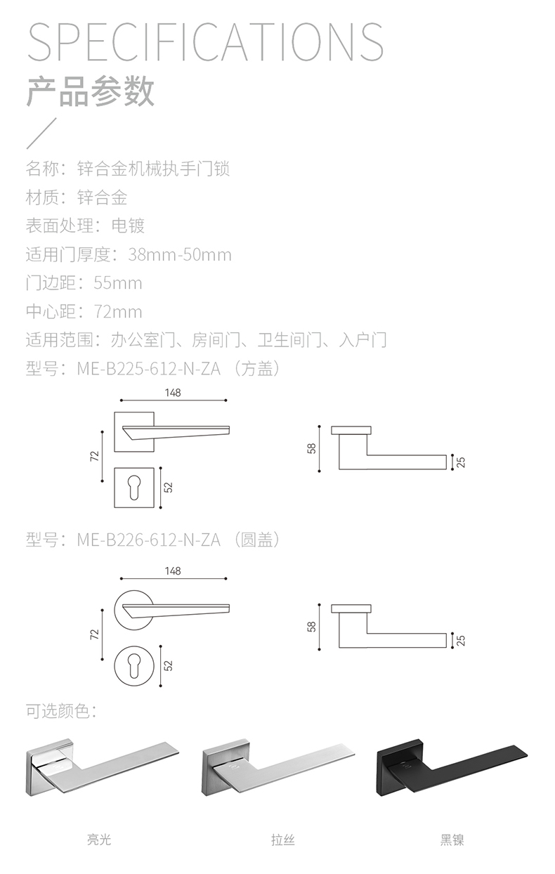 > 非凡娱乐:Mechanical Lever Lockset - Stainless Steel > 非凡娱乐:Zamak Leverset on Rose > Details