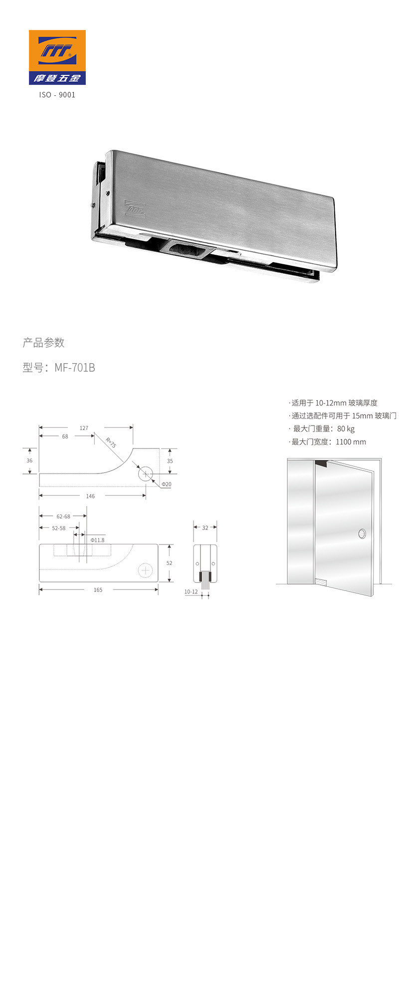 - 产品型号:玻璃门夹-上夹|MF-701B/MF-901B-CR5