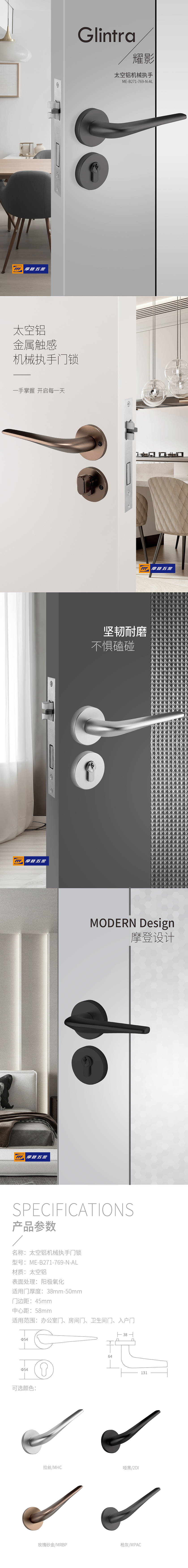 - 产品系列:太空铝分体门锁