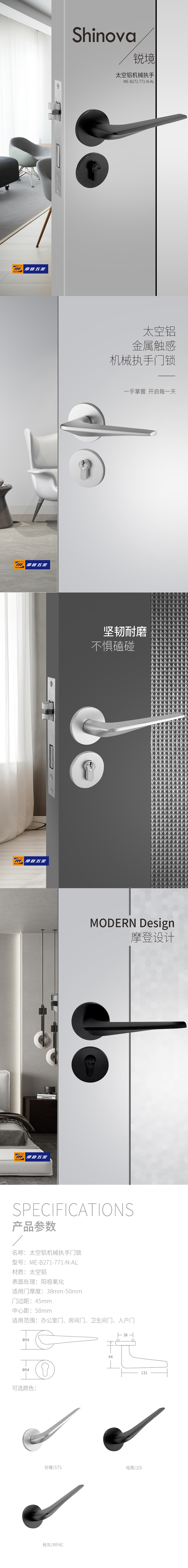 太空铝分体门锁