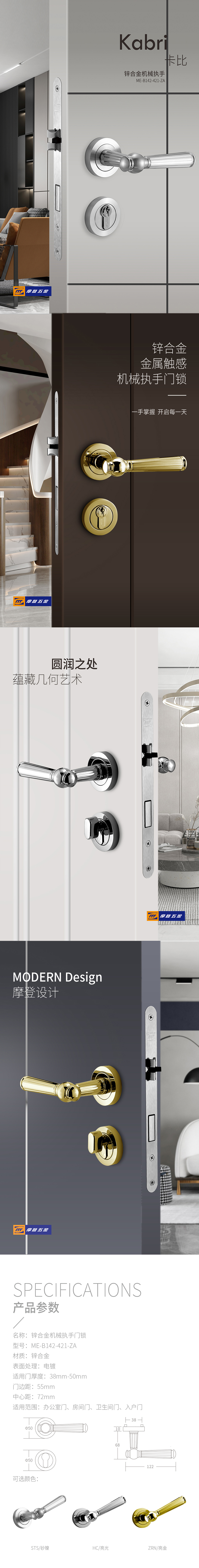 锌合金分体门锁